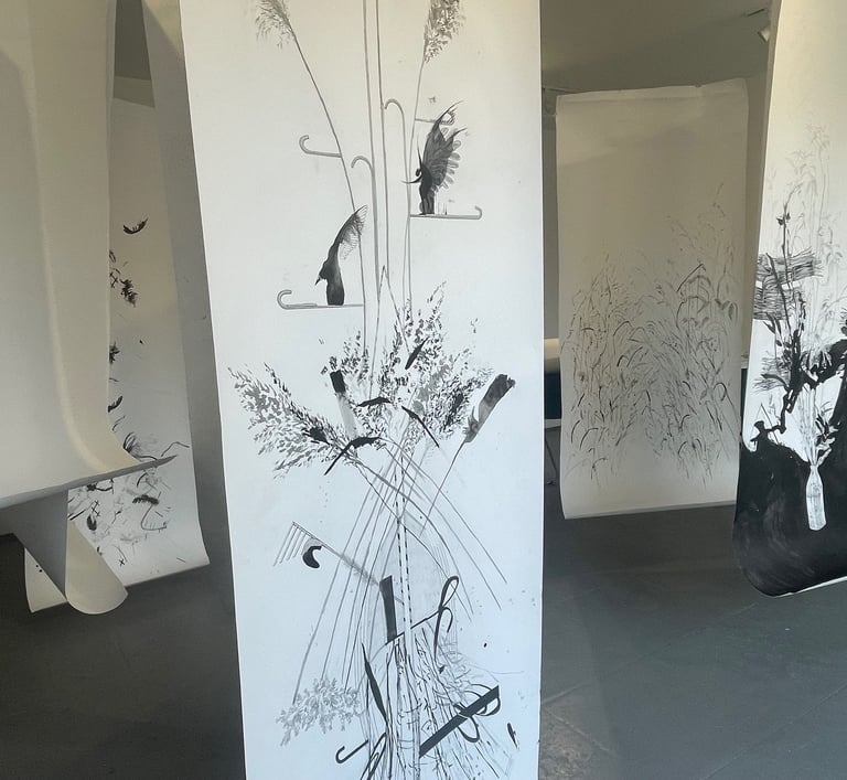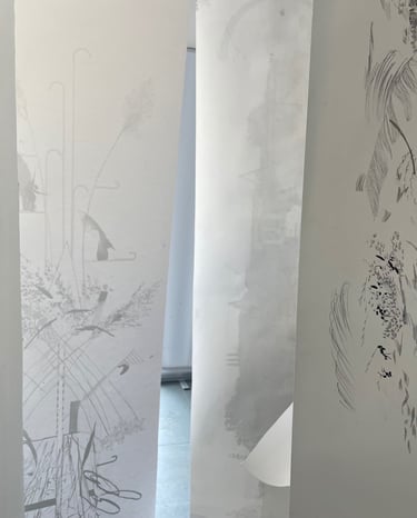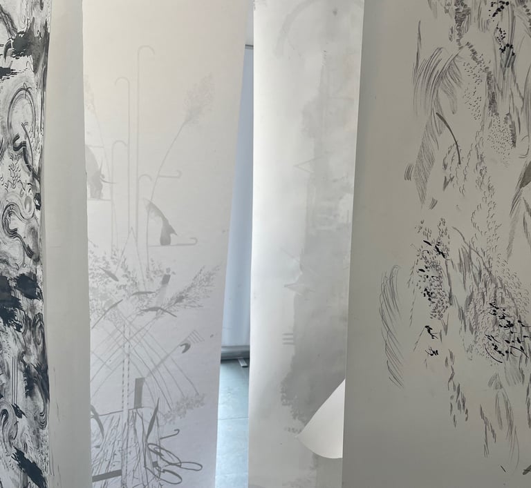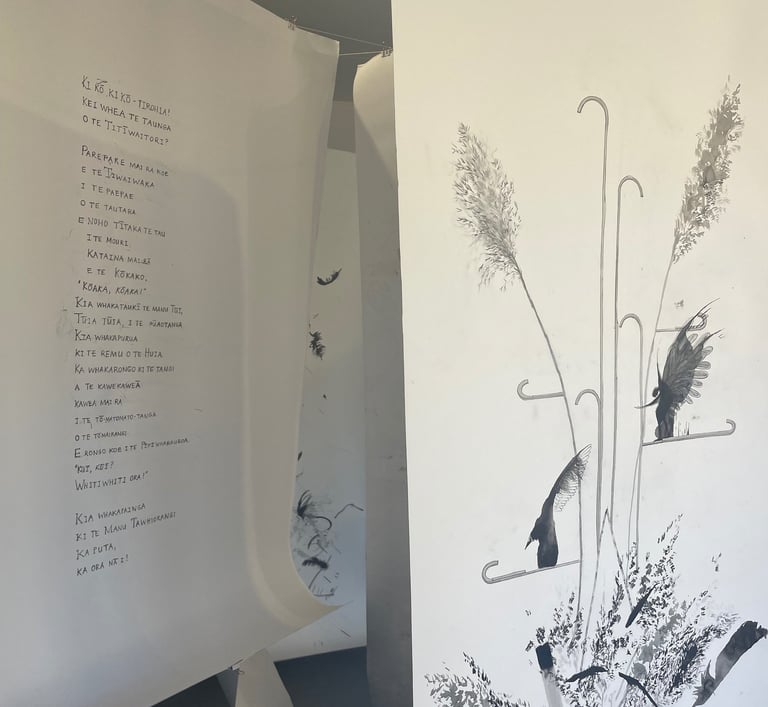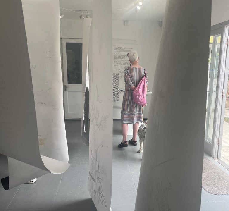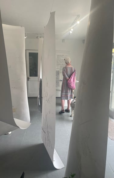 There were zines to read, large drawings that fell and unfurled like scrolls to walk among, sound, work and animated drawings. This exhibition formed part of experimentations as part of my practice-based PhD at Te Whiti o Rehua, School of Art, Massey University.